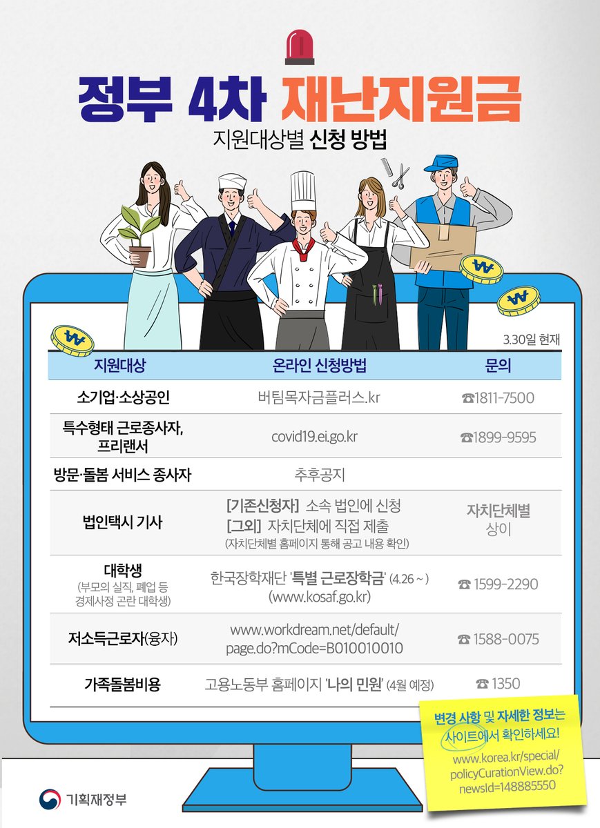 L5rc2cmf5qhawm. 소상공인 버팀목자금 플러스 지원대상 소상공인을 위한 4차 재난지원금인. 포토민주당 당사 앞에서 4차 재난지원금 제외 규탄 시위. 정부는 다음달 11일부터 3차 재난지원금 지급을 시작하고, 설 연휴 전까지 대상자의 90%에 대해 지급을 완료한다는 방침이다. 4차 재난지원금 신청방법, 4차 재난지원금 기초수급자, 4차 재난지원금 차상위계층, 4차 재난지원금 대학생, 서울 대전 대구 부산 광주 울산 창원 목포 재난지원금 4차 지급대상자 조회. 매출액 감소를 요건으로 하면, 매출은 증가했지만, 수익은 오히려 감소한 소상공인은 지원받을 수 없기 때문입니다. #4차재난지원금, #4차재난지원금대상자, #4차재난지원금대상,드디어 4차 재난지원금 지급 대상자에 대해서 공식적인 입장을 발표했습니다. 버티목자금플러스.kr 신청 사이트에 접속하여 지원금 신청을 할 수 있다. 먼저 많은 분들이 4차 재난지원금 검토사항에 대해서는 이미 알고 계실 거예요. 4차 재난지원금 29일부터 지급 시작. 소상공인 4차 재난지원금, 내일부터 지급… 최대 500만원. 정부는 별도의 심사 없이 4차 추경을 통해 이미 수혜를 받은 기존 수급자는 50만원을, 신규 대상자는 100만원을 지급할 방침이다. 중소벤처기업부가 소상공인 버팀목자금플러스+ 신청방법, 지원대상, 매출감소기준 등의 내용을 공지하였다. 그래서 다른 내용은 생략하고 중요한 내용만 말씀 드릴게요. 셀트리온, 창단 2년만에 바둑리그 통합챔프 등극. 저는 지난 3월 8일, 산자중기위 전체회의에서 제4차 재난지원금 중 '소상공인 버팀목자금 플러스' 예산의 형평성을 지적했습니다.