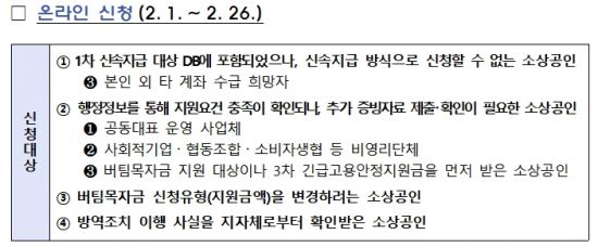 소상공인 버팀목자금은 고용부의 긴급고용안정자금, 방문‧돌봄서비스 종사자 생계비 지원금, 법인택시 기사 소득안정자금 등과.
