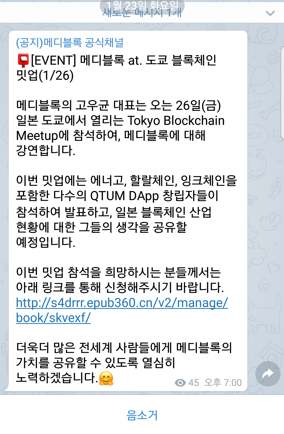 ʳµì§ Ë©ëë¸ë¡ ʳµìì±ë Telegram. 메디블록 마케팅팀을 이끌어주는 가장 큰 목표는 분기별 okr입니다. 고급 폐지 위주 에어드랍 냥냥띠 고급 에어드랍 o 스캠 에어드랍 x 냥냥띠 채널 : 특히 스캠(scam, 사기) 거래소 는 목록에 넣지 않기 위해 최선을 다해 조사합니다. 공지 메디블록, mgh와 공동연구한 markit 프로젝트 공개 메디블록이 하버드 의과대학 실습 수련병원인 massachusetts general hospital(이하 mgh)와 공동연구한 markit 프로젝트를 공개합니다. Okr이란 objective and key results의 약자로, 3개월 주기로 달성하고자 하는 목표(objective)와 핵심 결과지표(key results). Shinhan life insurance is joining the medipass service. 떡락이의 블록체인 연구소는 블록체인에 대한 전반적인 지식 공유를 위해 만들어졌습니다. 하지만 그 외 블록체인 관련 지식 컨설팅, 암호화폐 ico 스캠 컨설팅 등도 합니다. Frühlingsbeginn kindergarten / die 27 besten bilde. 지난 4월 27일, 메디블록 팀은 university of basel의 innovation center에서 주한 헬스케어 산업리더 회의에 참석했습니다. 하지만 두 가지 기본 원칙만 지킨다면 도난, 사기. 스캠 인터뷰 #김성래 '팀 타율 1위는. 신용 카드 정보나 비트코인을 빼앗으려는 스캠 거래소도 많습니다. 1 751 просмотр 1,7 тыс. Mediblock 알트코인 altcoin 김치코인 메디컬코인 비트코인 이더리움 리플 펌핑코인 스캠.